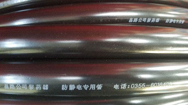 裝藥器專(zhuān)用半導(dǎo)體防靜電輸藥膠管,是裝藥器在輸藥過(guò)程中唯一專(zhuān)用管材,具有導(dǎo)電、防火花、耐壓、耐酸、防腐、耐磨損等作用,是裝藥器在輸藥過(guò)程中確保人身安全,杜絕重大事故隱患的特殊管材。 防靜電專(zhuān)用管 防靜電輸藥管生產(chǎn)過(guò)程 防靜電輸藥管生產(chǎn)線