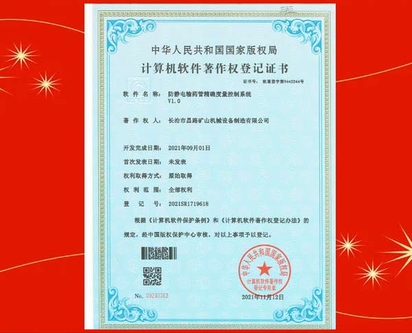 防靜電輸藥管搞破裂能力控制系統(tǒng)著作權登記證書